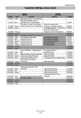TAKWIM PETRA 2024/2025