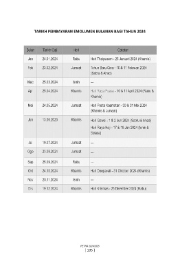 TARIKH PEMBAYARAN EMOLUMEN BULANAN BAGI TAHUN 2024 PETRA 2024/2025 [ 105 ]